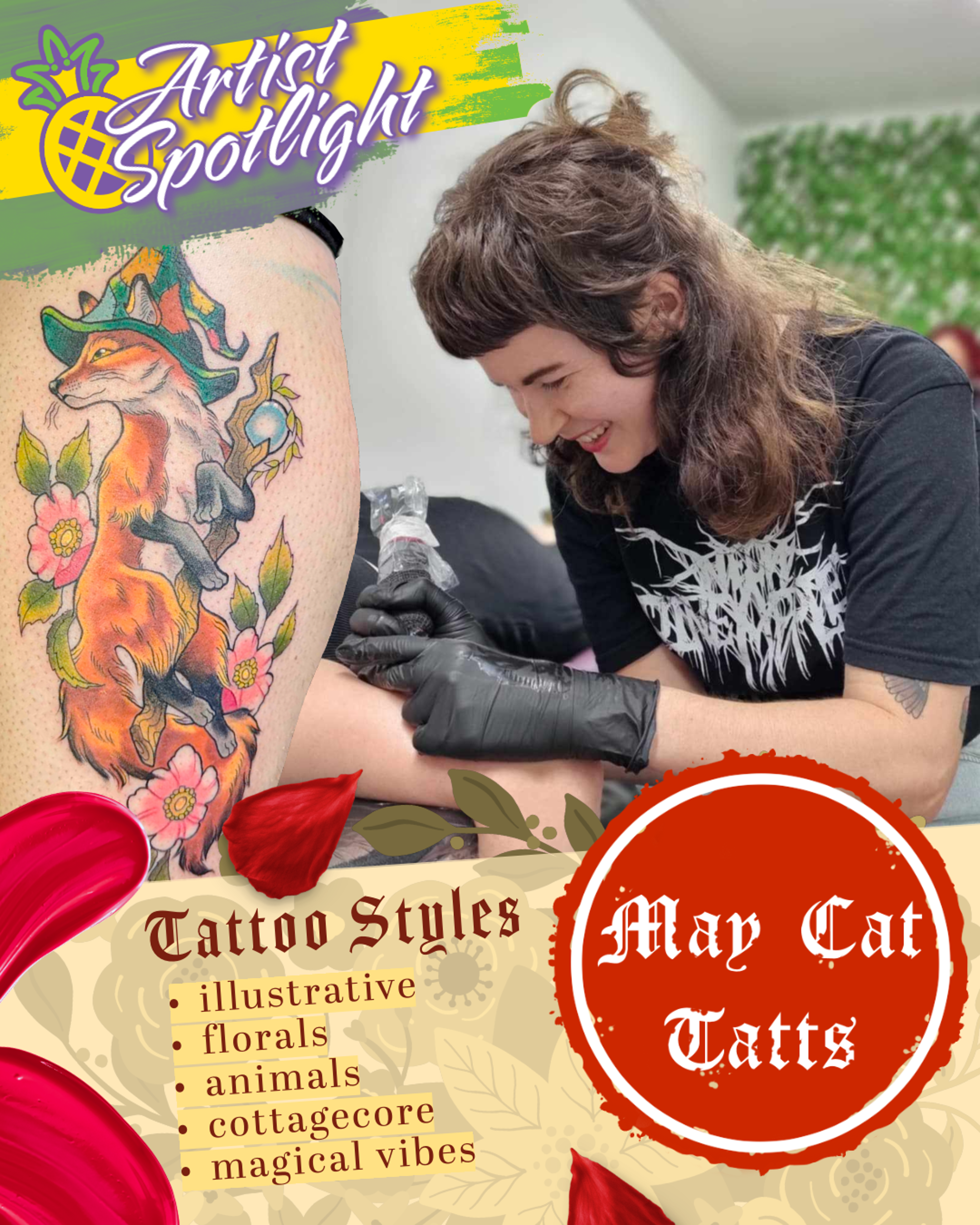 Artist Feature - @may.cat.tatts Adelaide Creator of Illustrative and NeoTraditional Tattoos